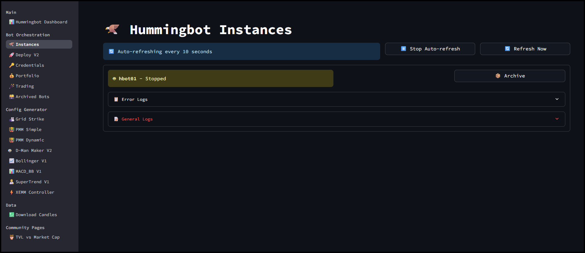 To monitor your bot, go to the Instances page —