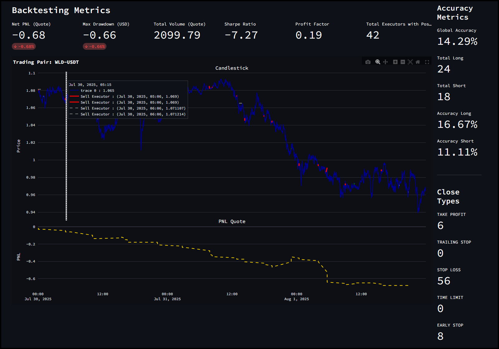 Behind the scenes, the controller monitors for stale or inactive orders and replaces them based on executor_refresh_time. If an order hits stop-loss, the strategy enforces a cooldown (cooldown_time) before placing it again.