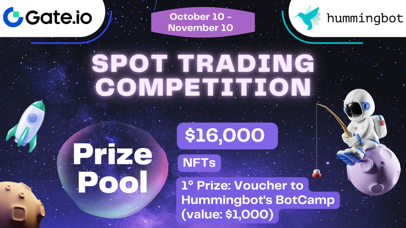 Last month, we partnered with Gate.io to organize a Trading Competition for the Hummingbot community. The goal was to conduct an experiment to see if these types of promotions would be mutually beneficial for the Hummingbot community and the exchange itself.