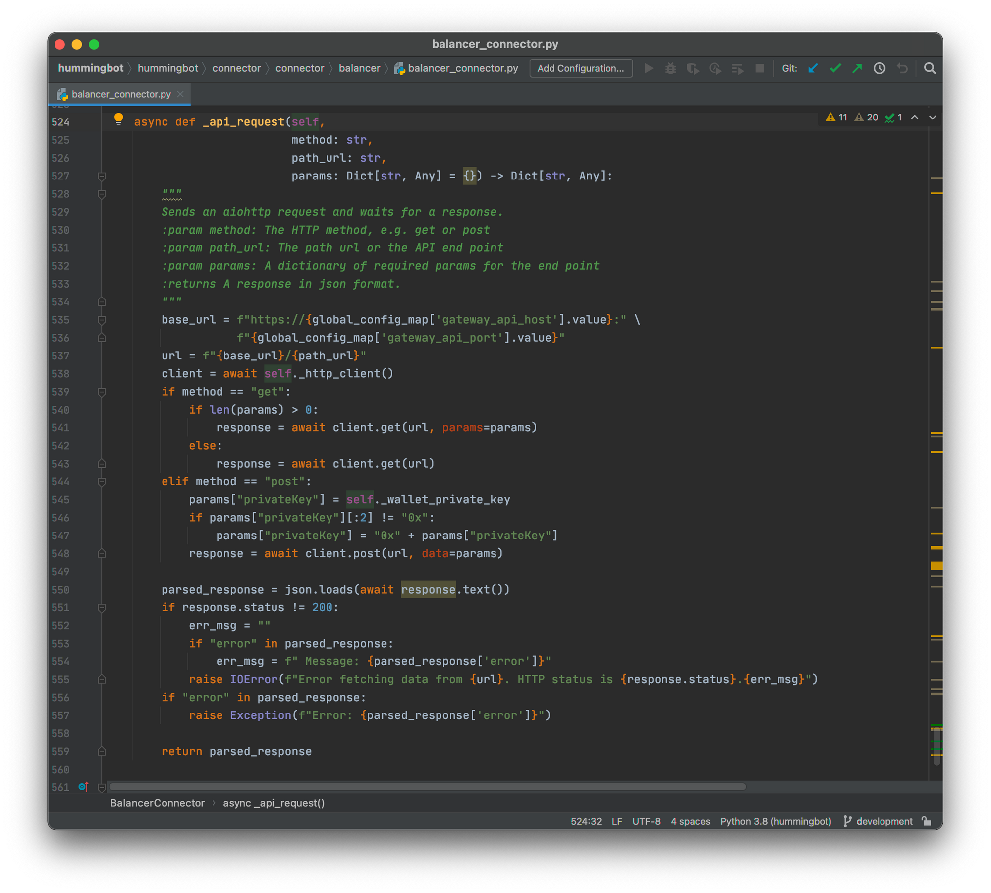 Take the Balancer DEX connector for example. Almost all of the operations in the connector - whether it is getting market data like order prices, fetching the wallet balance or making orders - go through the BalancerConnector._api_request() method. When you look into the method, you'll find it's really just delegating all the work to a Gateway API endpoint.