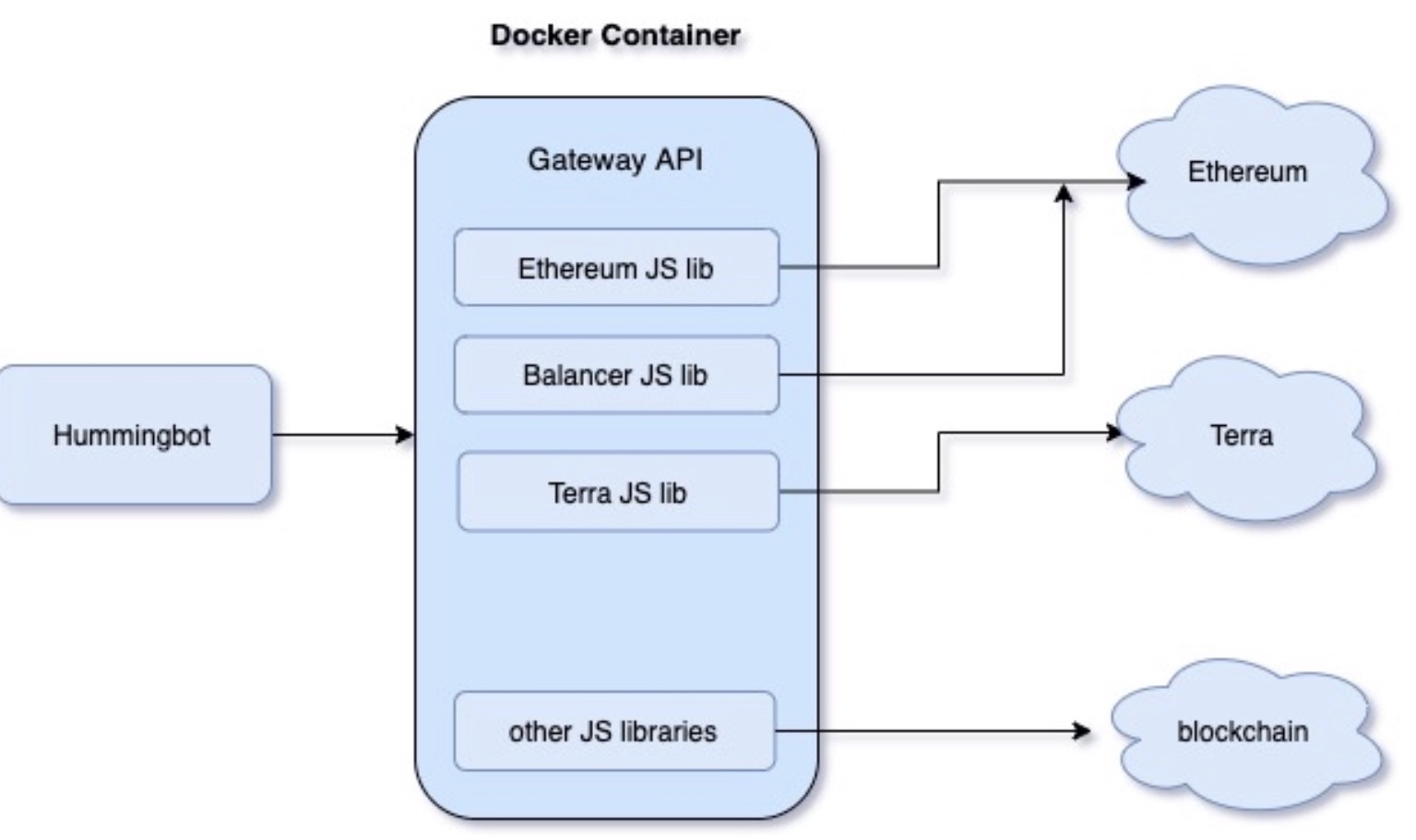 To build the connector to Balancer, we created a separate open source repository called Hummingbot Gateway that helps the Hummingbot client interact with protocols that utilize Javascript-based SDKs, which are common for blockchain protocols. This provides a simpler entry point for external developers who may want to add connectors for their own protocols or extend the functionality of an existing connector.