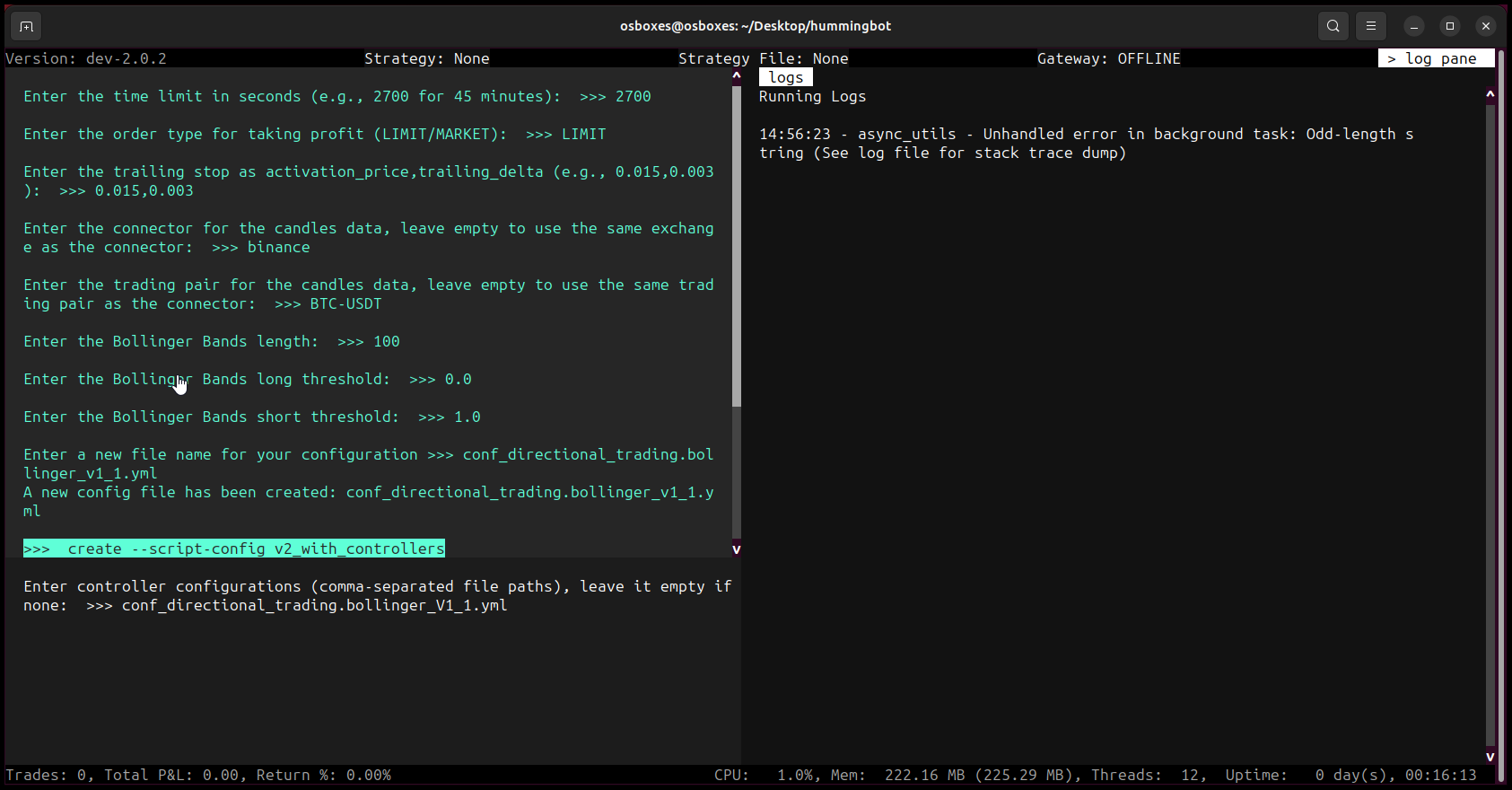For this example, we'll use the bollinger_v1 directional trading controller.