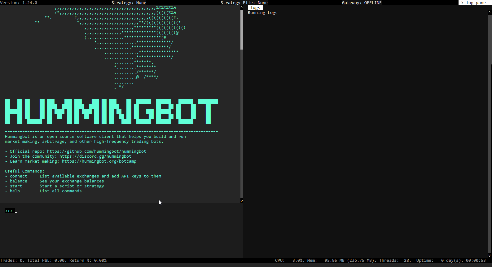 Now, install Hummingbot by following the installation process. The easiest way to get started is to clone the Github repo and launch the Docker image: