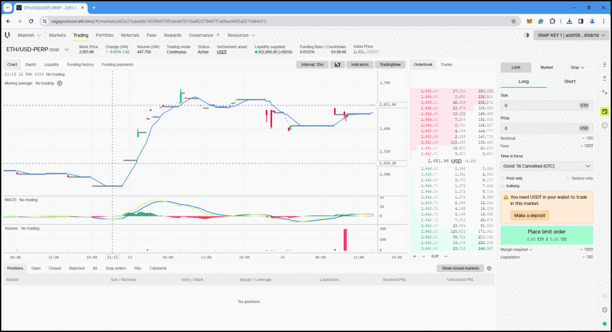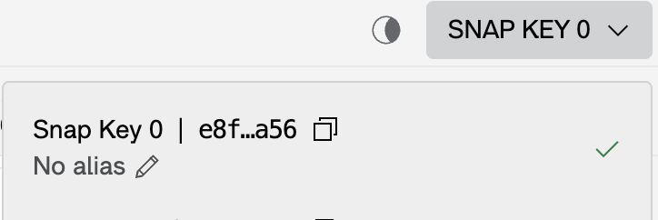 After connecting your Vega Wallet, look for your Snap Key in the top right corner of the screen.